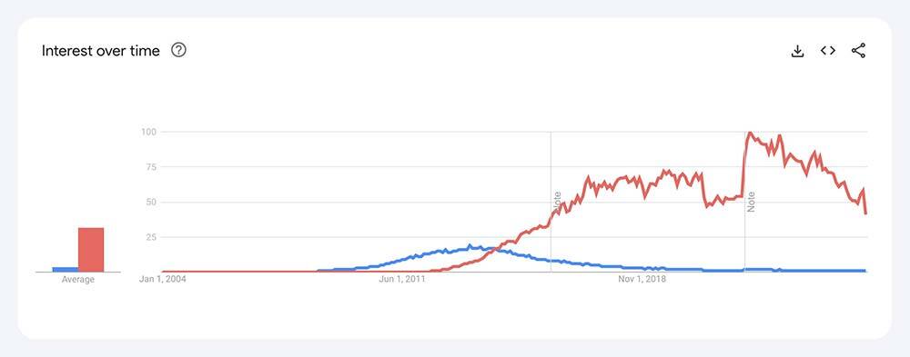 If you look at the Google Trends search above, you can see that Yii is dying and Laravel is on a lesser decline but still huge. Although a Google Trends search for "Yii" and "Laravel" shouldn't be seen as gospel, it gives a reasonable idea of usage and popularity.